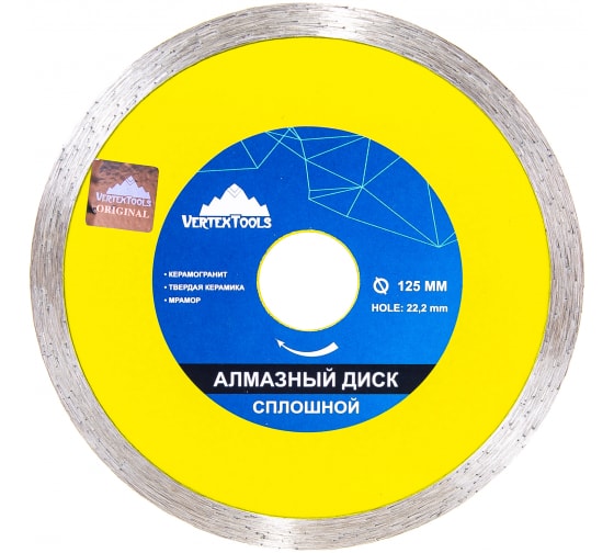 Диск алмазный 125мм сплошной VERTEXTOOLS