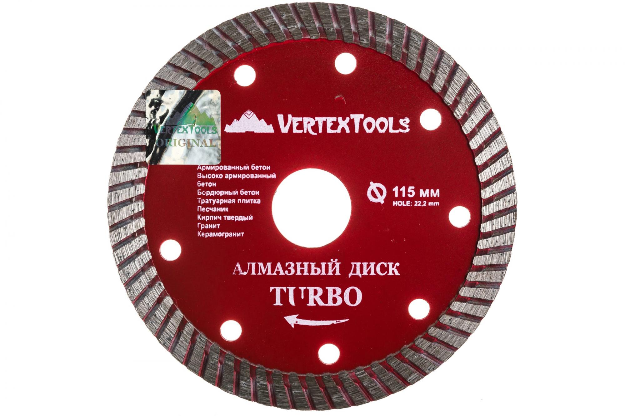 Диск алмазный 115x2x22мм турбо VERTEXTOOLS