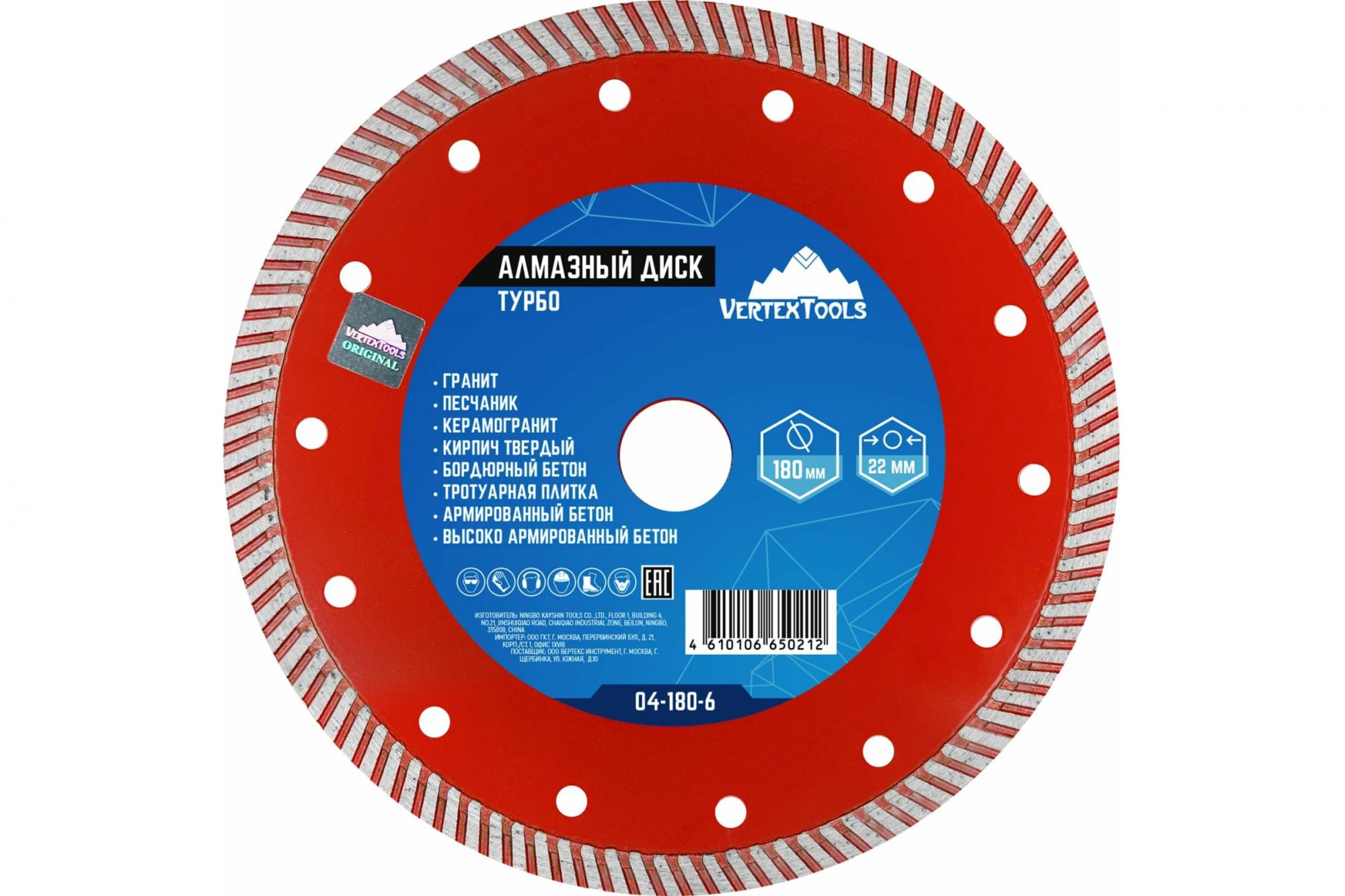 Диск алмазный 180x2x22мм турбо VERTEXTOOLS