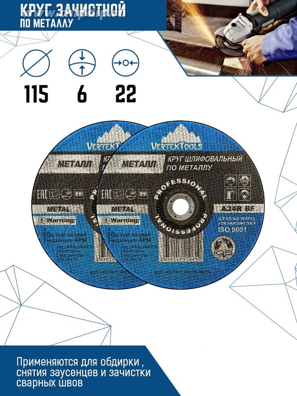 Диск шлифовальный зачистной по металлу 115х6х22 VERTEXTOOLS (5шт/упак)