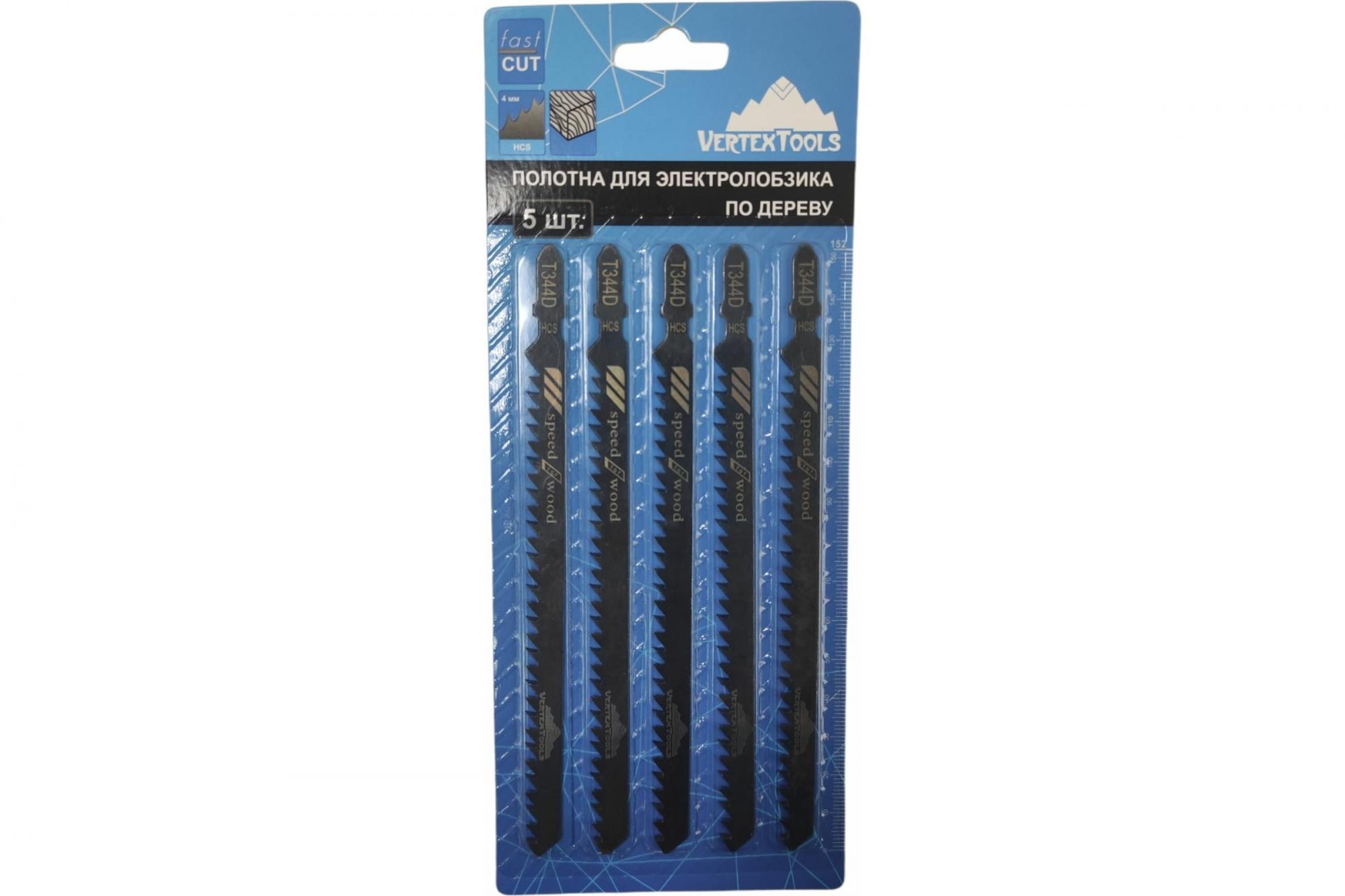 Полотно 125x4мм для электролобзика по дереву и пластику T344D VERTEXTOOLS (5шт/упак)