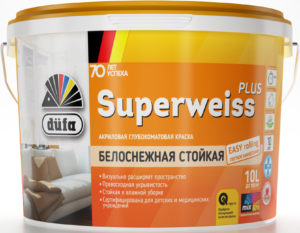 Краска ВД DufaRetail SUPERWEISS PLUS,белоснежная база 1, 10л (1шт/уп,44шт/пал)