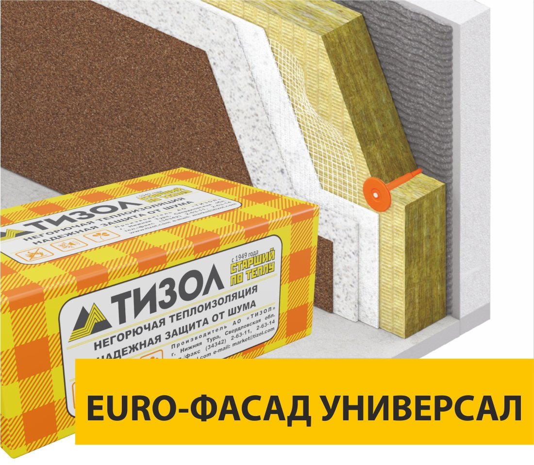 Утеплитель базальтовый Тизол EURO-ФАСАД УНИВЕРСАЛ 130кг/м3 (1000x600x50, 6шт; 0,18м3/уп)